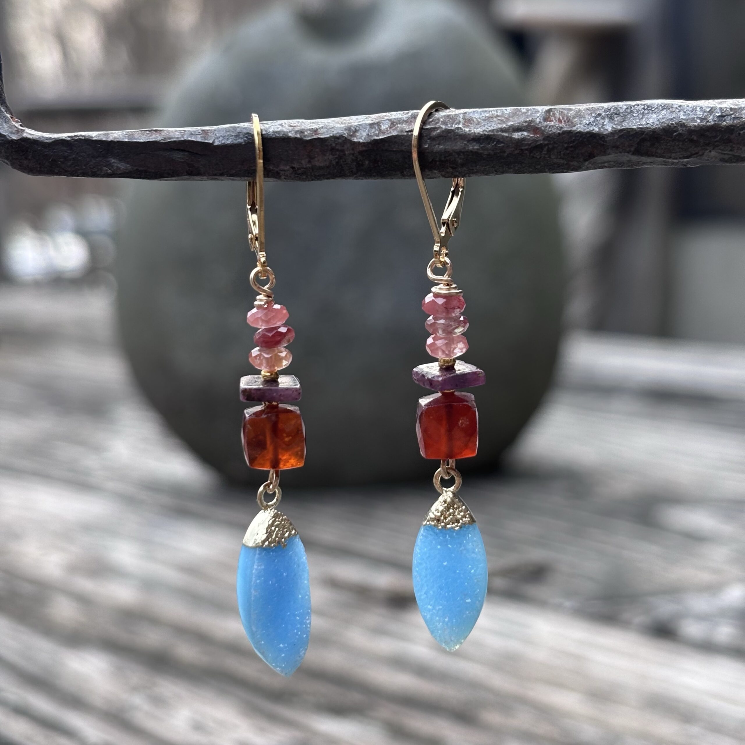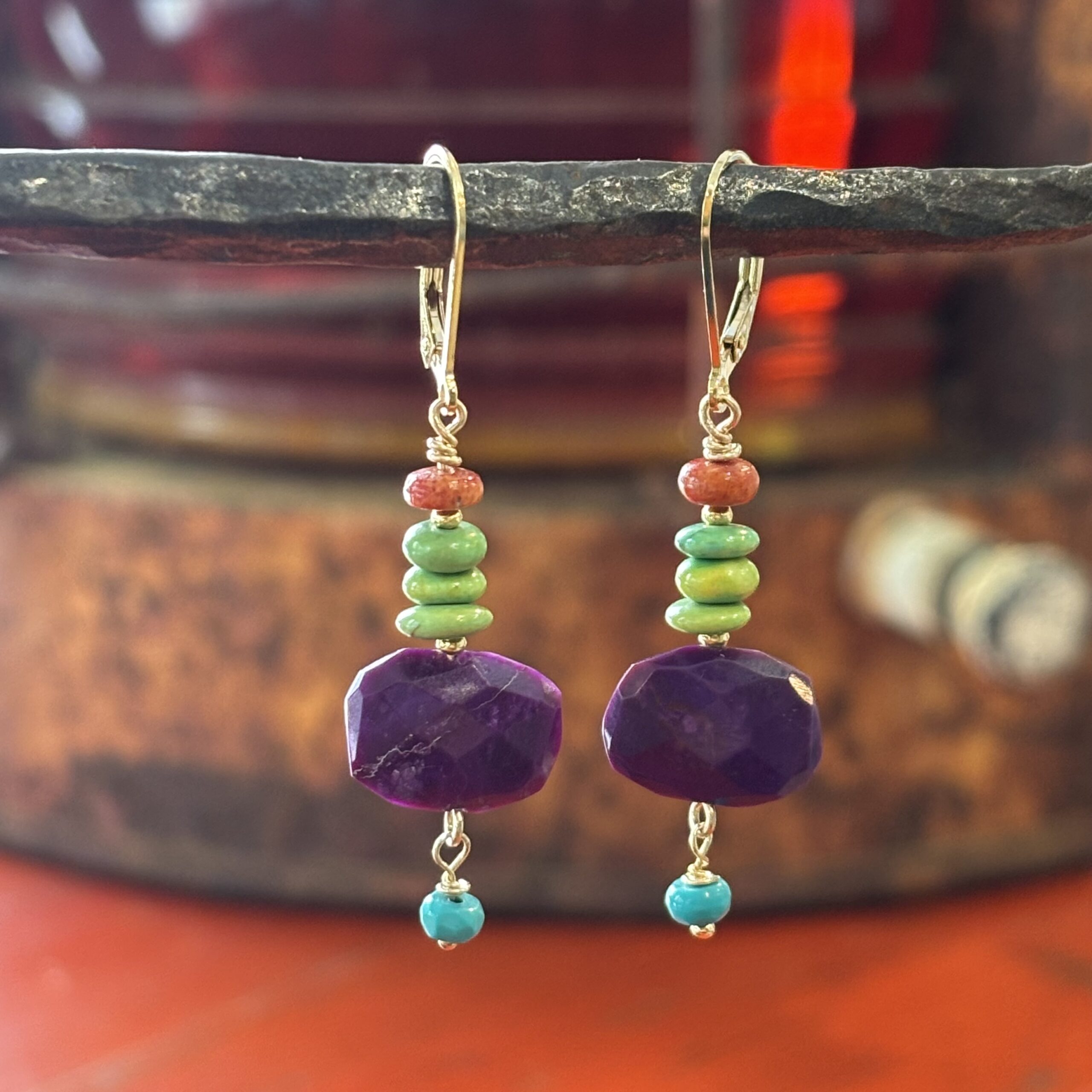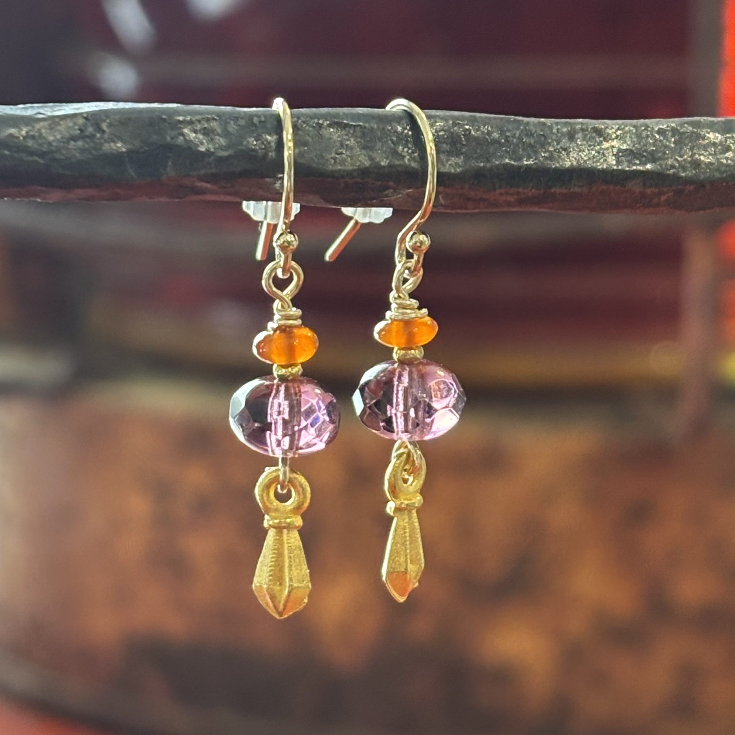 Sale! Purple Crystal and Carnelian Gold Earrings Sale
